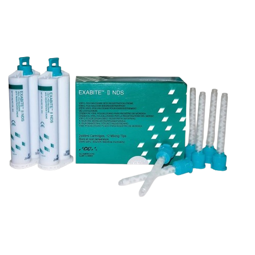 GC Exabite II NDS (Set of 2) is a high‑precision bite registration material that captures accurate occlusal relationships with excellent dimensional stability. Its easy handling and fast set improve chairside efficiency. Ideal for restorative, prosthetic, and orthodontic procedures requiring precise occlusal records.