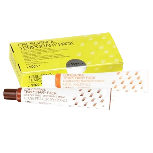 GC Freegenol 1‑1 Pkg is a non‑eugenol temporary luting cement used for cementing temporary crowns and bridges with a smooth, easy‑mixing consistency. It won’t interfere with resin polymerization, is easy to place and remove, and allows adjustable setting time for convenient clinical use.