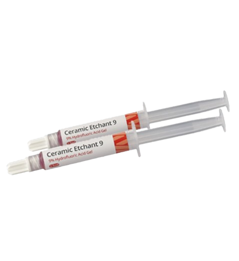 Ceramic Etchant 9 (HF Gel 9%) is a specialized dental etching gel containing 9% hydrofluoric acid, formulated for conditioning glass ceramics, including lithium disilicate, feldspathic, and other etchable ceramic restorations. By selectively dissolving the ceramic surface, it produces a micro-retentive pattern that significantly enhances adhesive bonding with resin cements and primers.