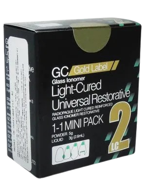 GC Gold Label 2 LC (Light‑Cured) is a light‑activated glass ionomer restorative material combining the benefits of glass ionomer chemistry with resin reinforcement for enhanced strength. It offers excellent esthetics, fluoride release, and reliable adhesion to tooth structure. Easy to place with immediate light cure, it’s ideal for Class III/V and cervical restorations with improved handling and durable results.
