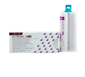 GC RELINE II is a soft denture relining material designed for denture wearers who cannot tolerate conventional hard acrylic denture reliners. Soft denture reliners are typically used for denture patients exhibiting thin, relatively non-resilient mucosa or severe alveolar bone resorption. While soft liners are more comfortable for these patients, they often easily peel from the periphery of the denture and are difficult for the dental professional to grind and adjust.