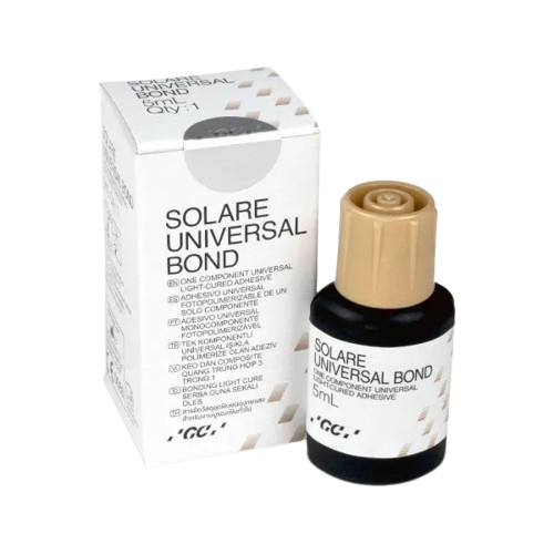 GC Solare Universal Bond is a universal dental adhesive designed for reliable bonding with composite resins to enamel and dentin. It offers versatile application modes (self‑etch, selective‑etch, total‑etch) with strong bond strength and low technique sensitivity. Easy to use with excellent compatibility and long‑lasting adhesion in restorative procedures.